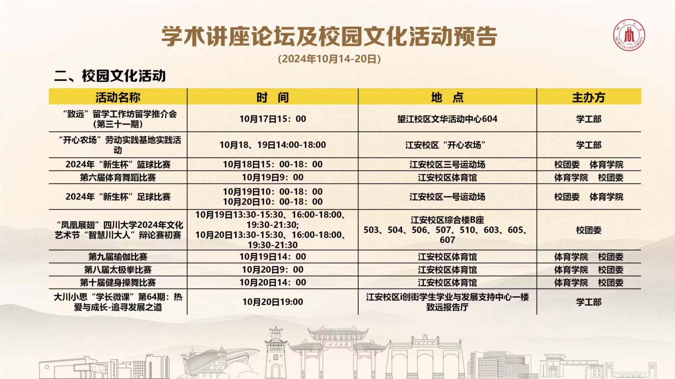 亚洲情色 2024年10月14日-20日学术讲座论坛及校园文化活动预告