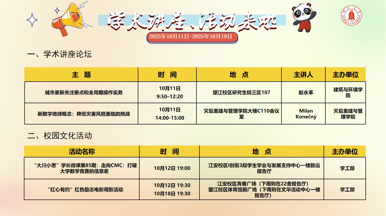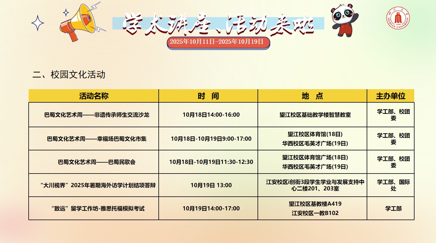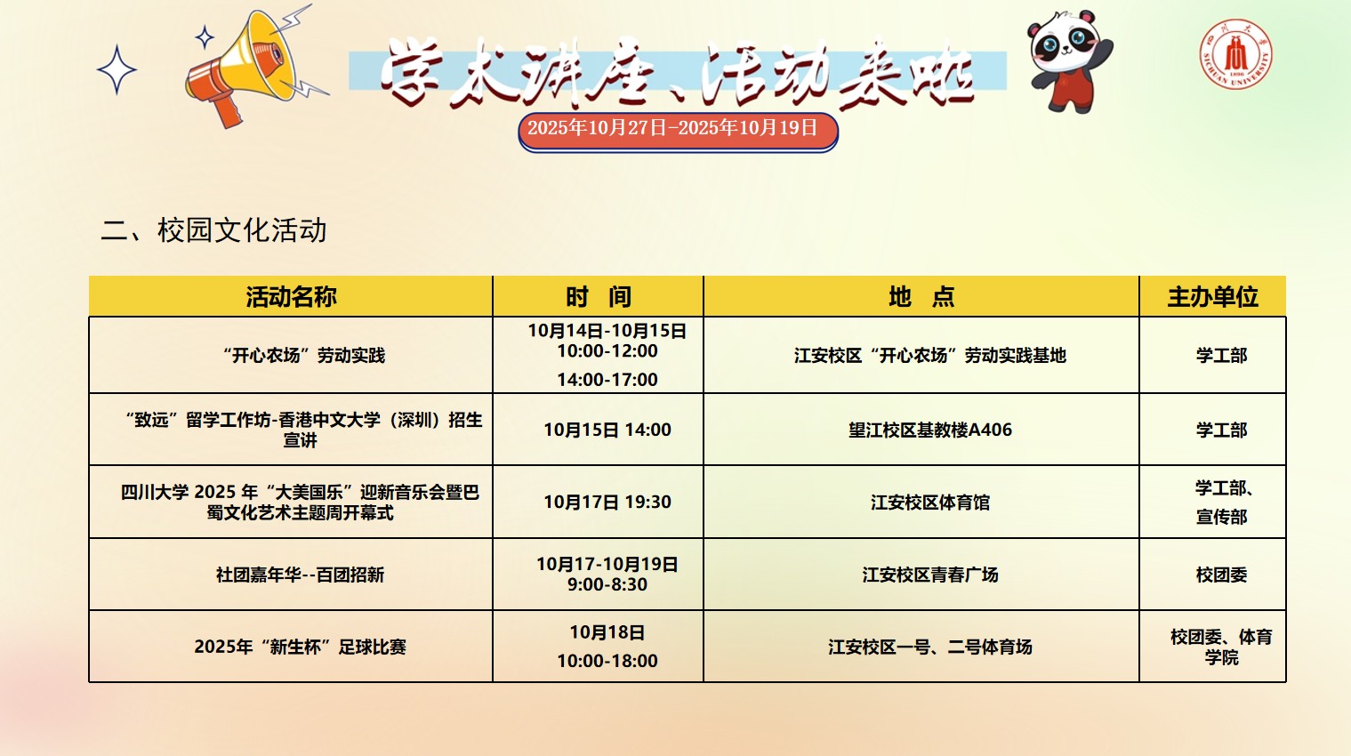 亚洲情色 2025年10月11日-2025年10月19日校园文化活动预告