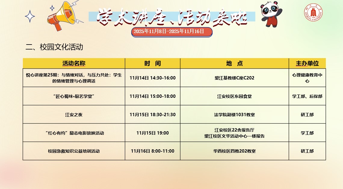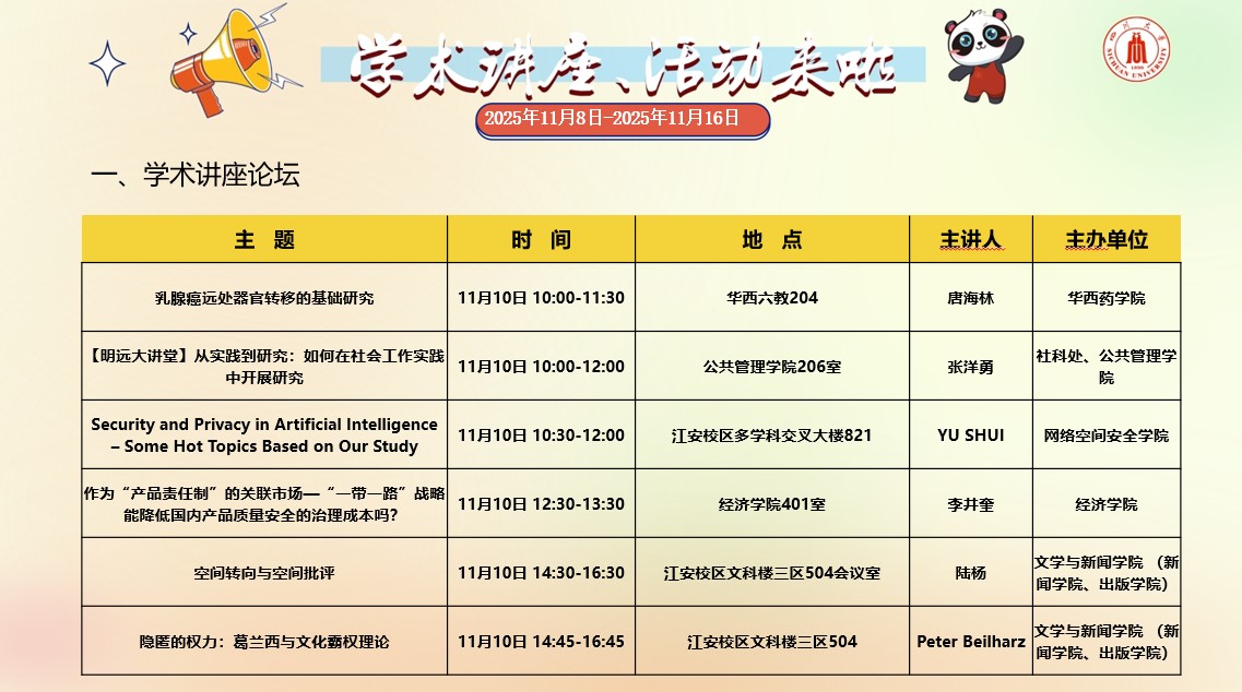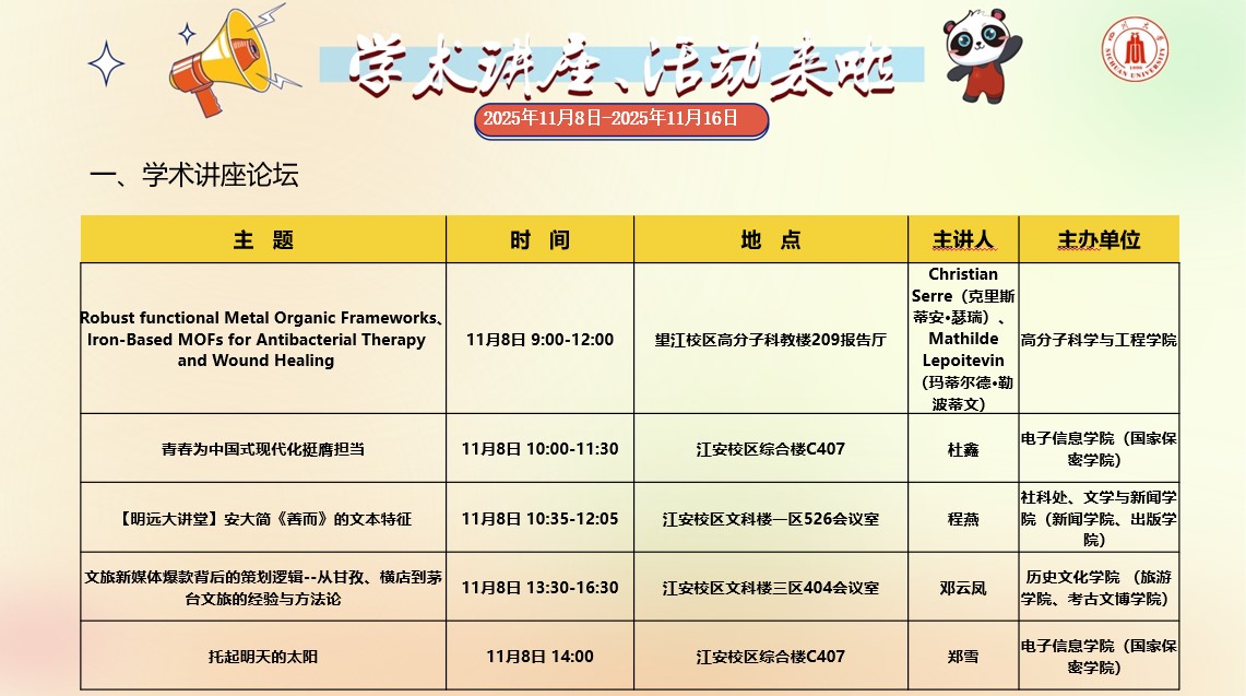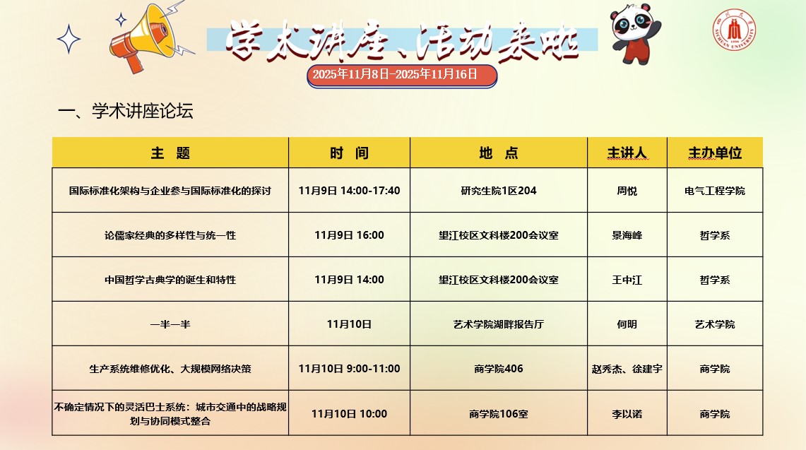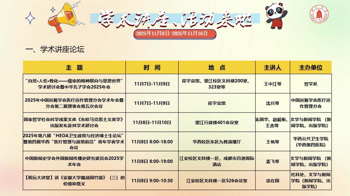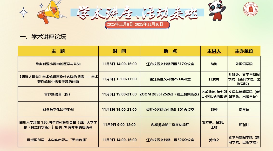 亚洲情色 2025年11月8日-11月16日学术讲座和校园文化活动预告