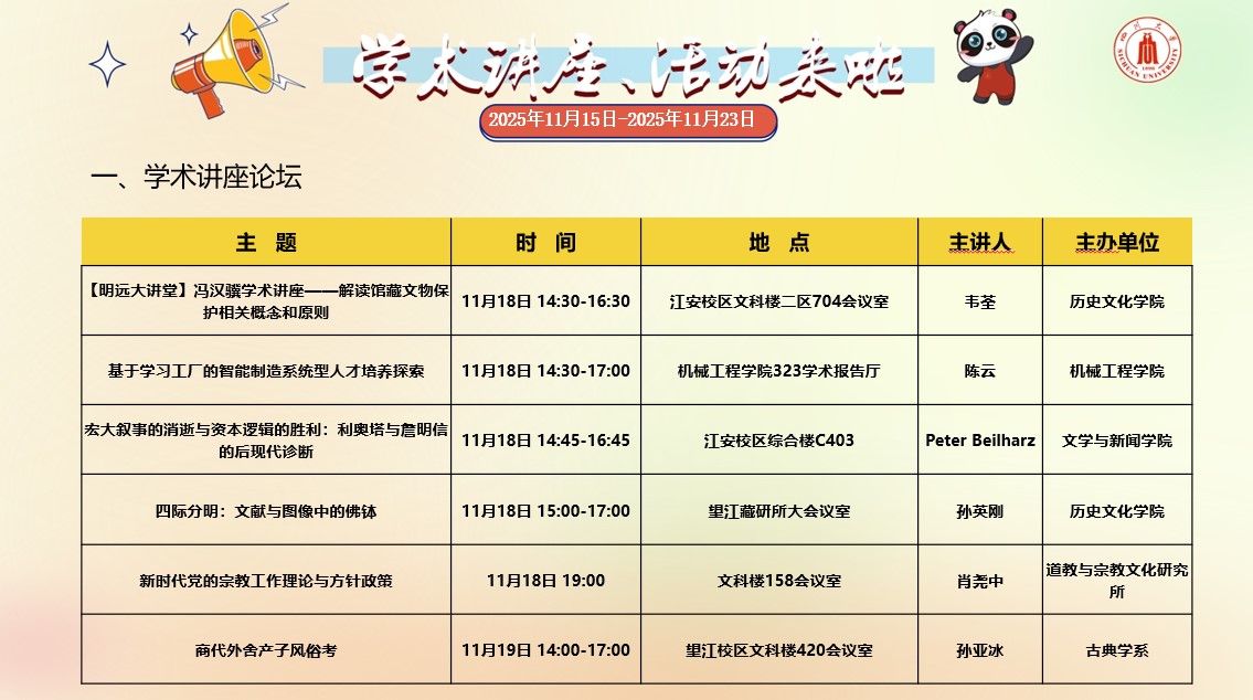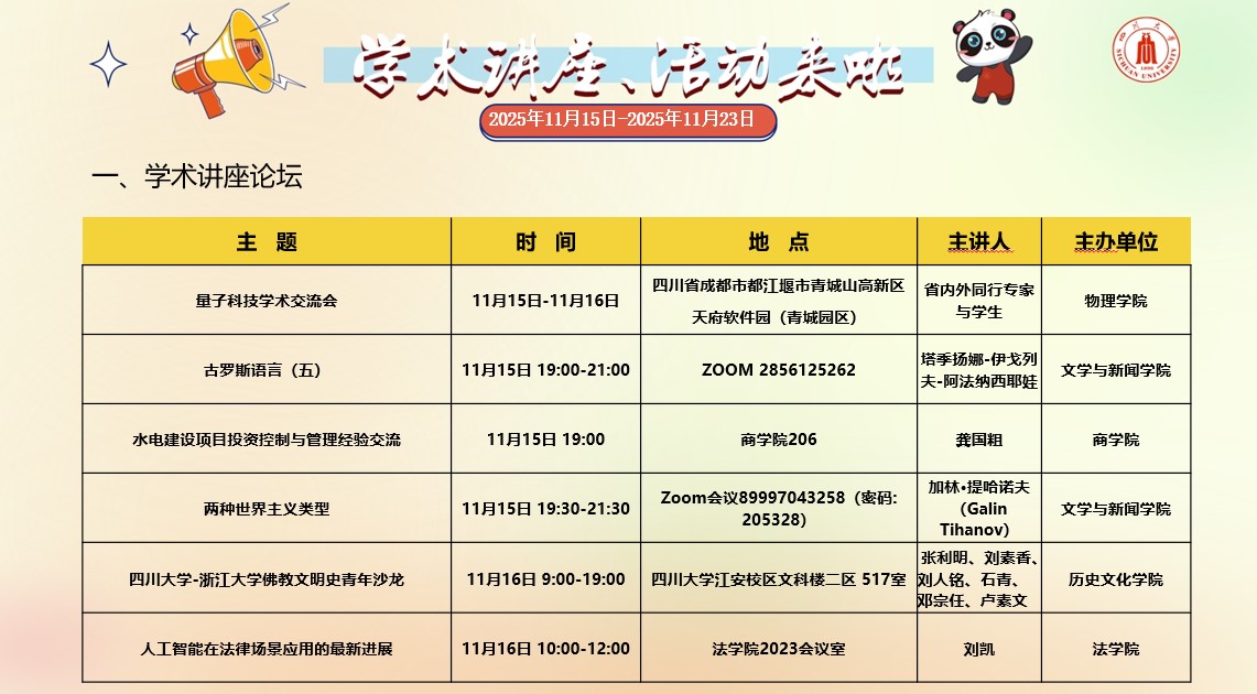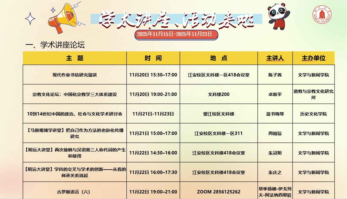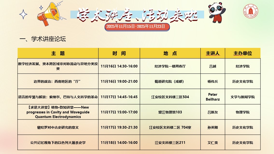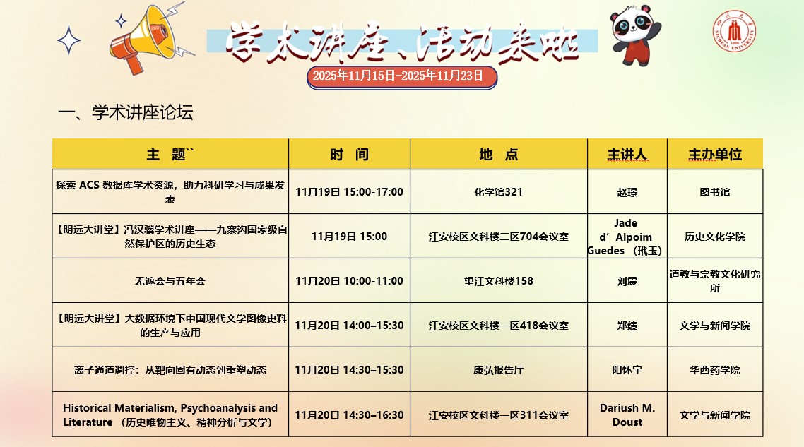 亚洲情色 2025年11月15日-2025年11月23日学术讲座和校园文化活动预告