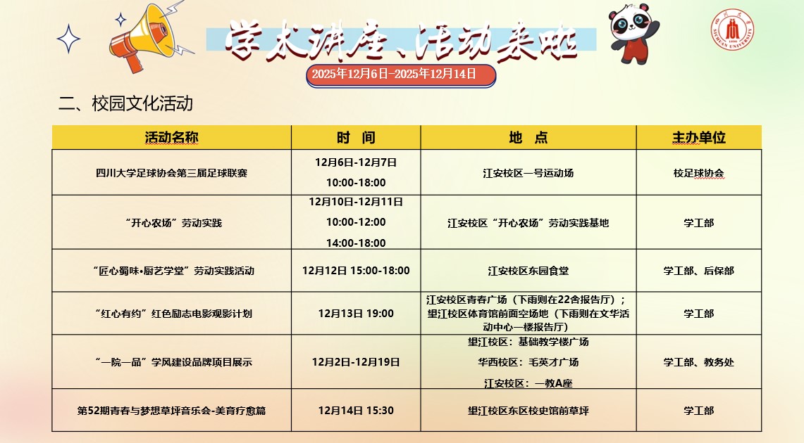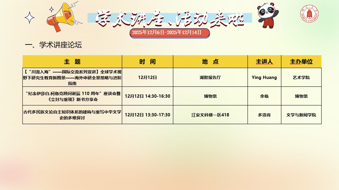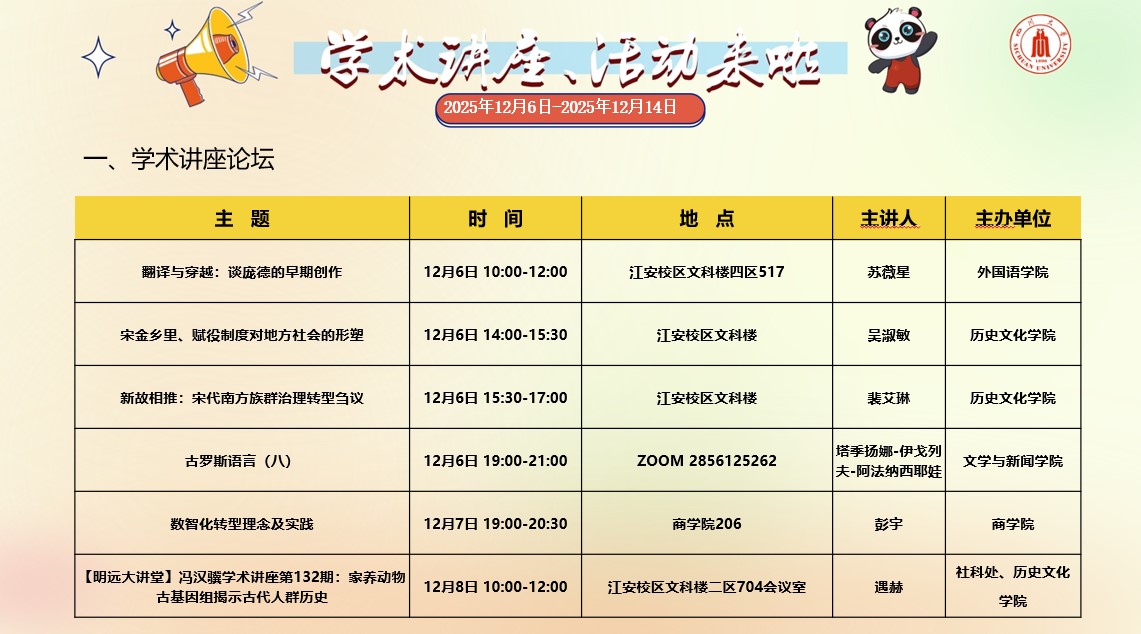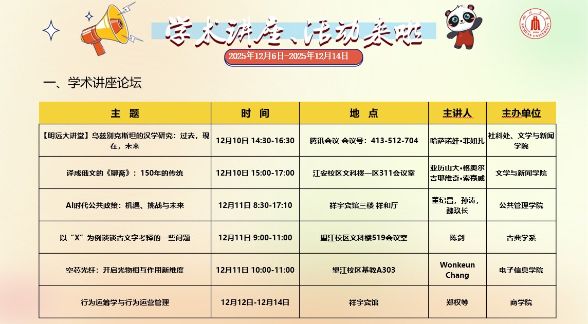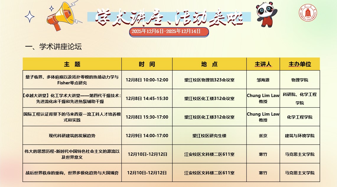 亚洲情色 2025年12月6日-2025年12月14日学术讲座和校园文化活动预告