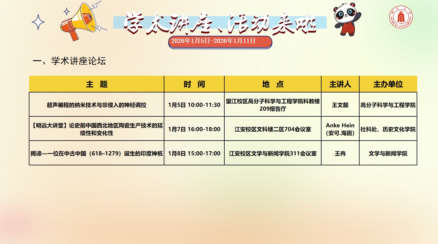 亚洲情色 2026年1月5日-2026年1月11日学术讲座预告