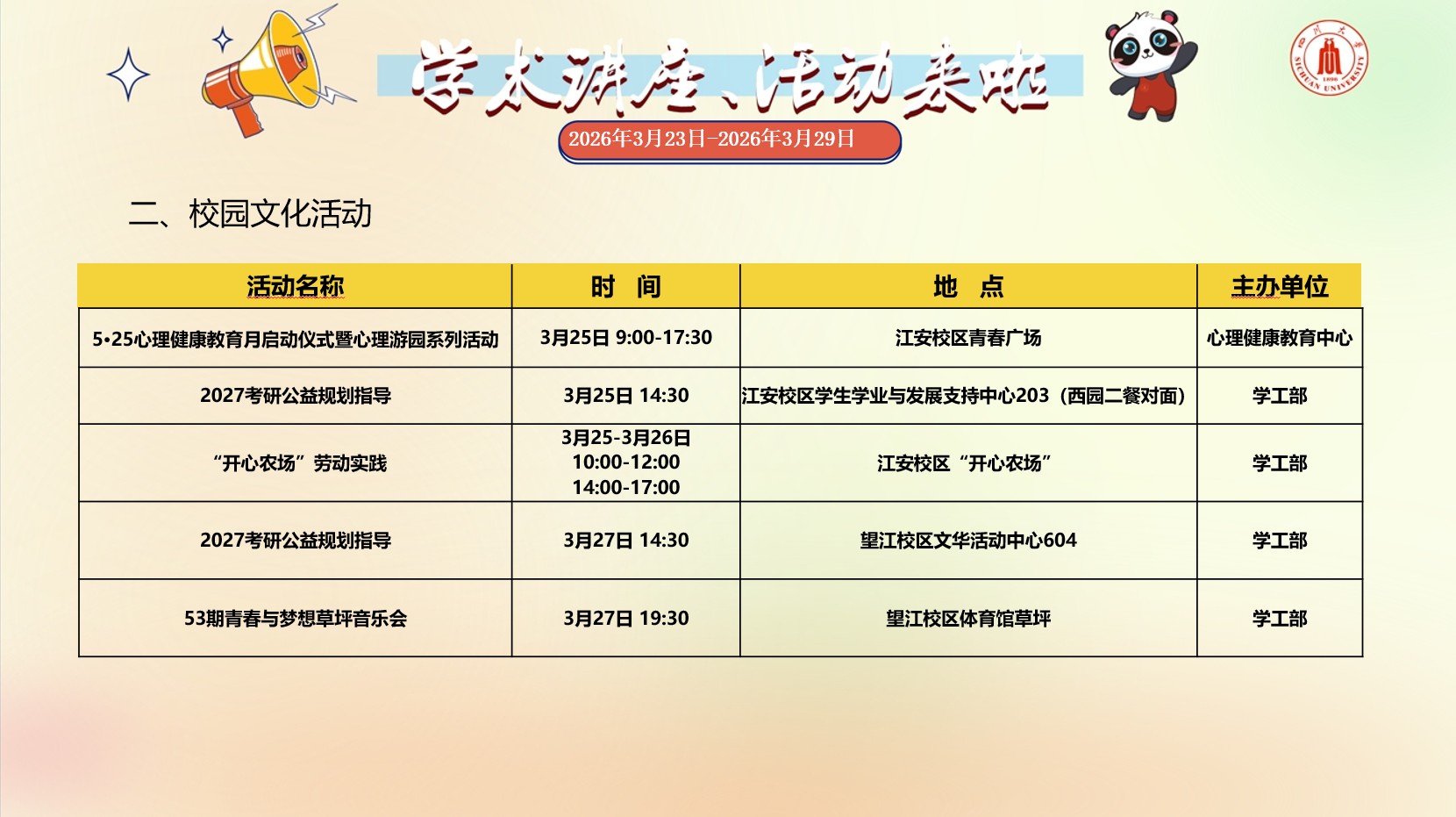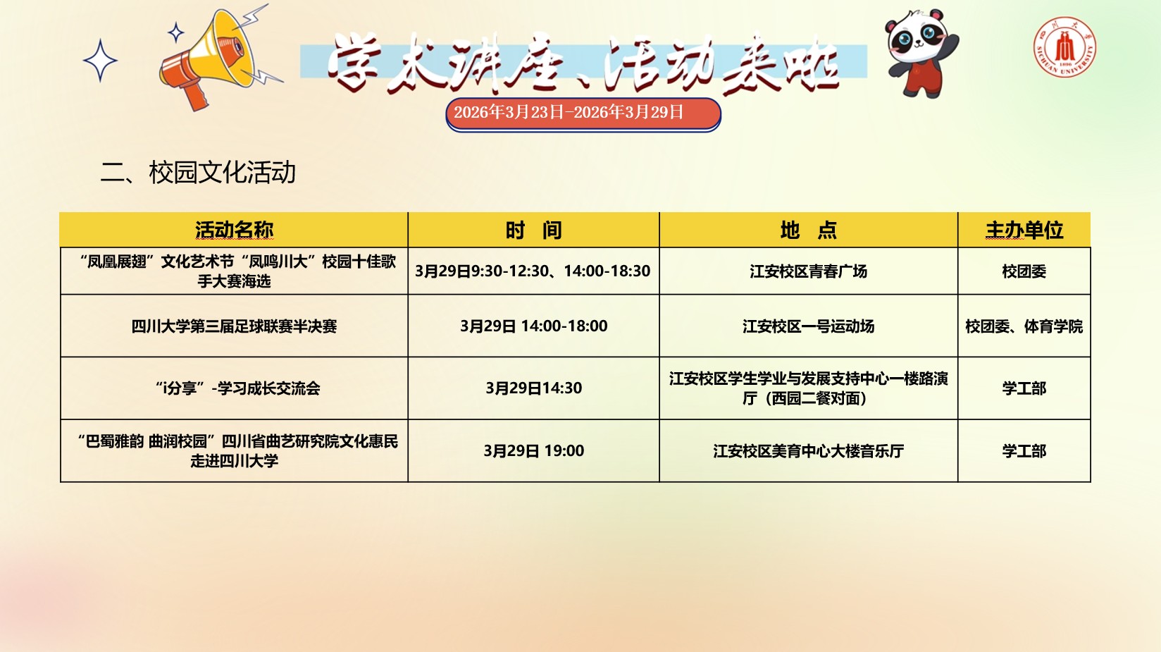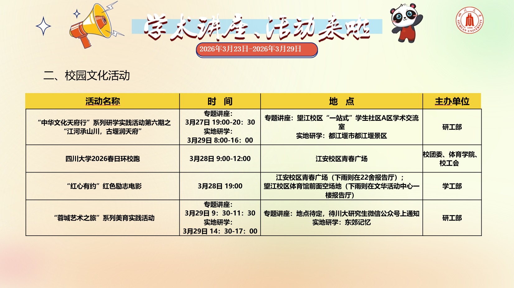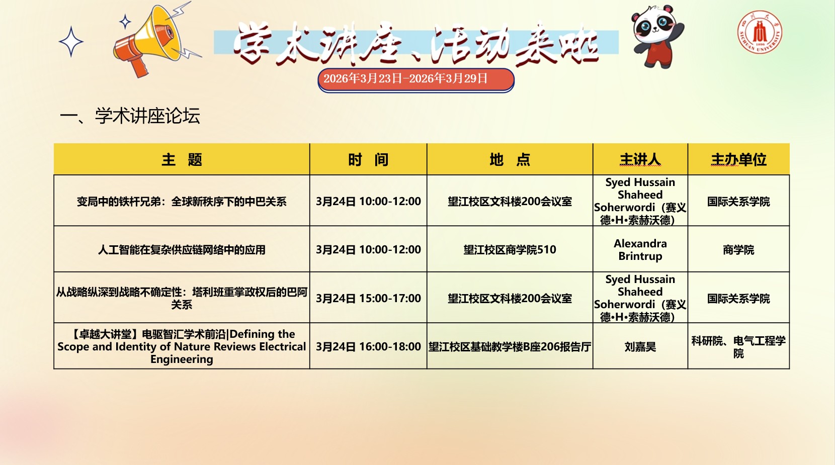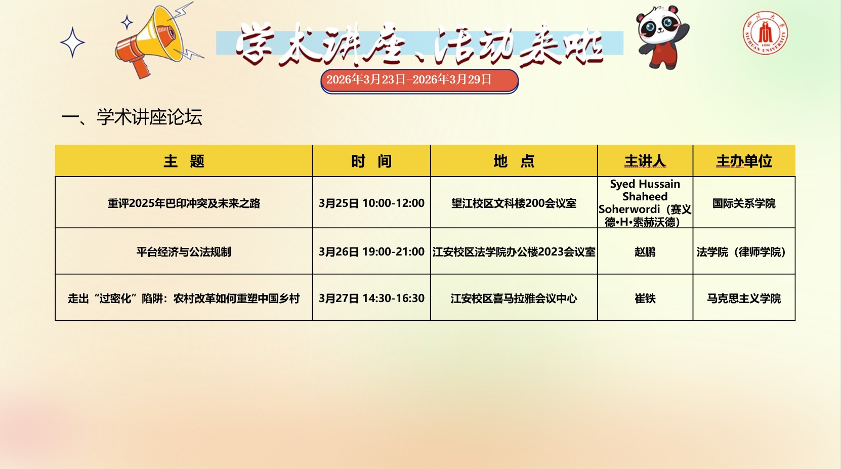 亚洲情色 2026年3月23日-2026年3月29日学术讲座预告