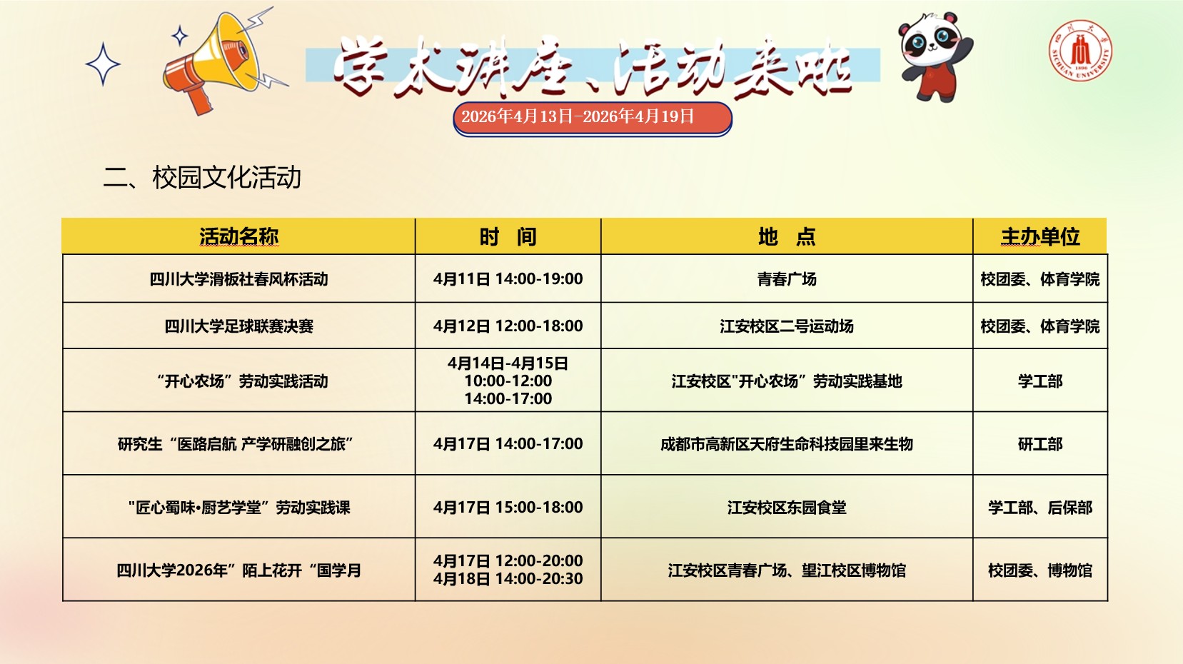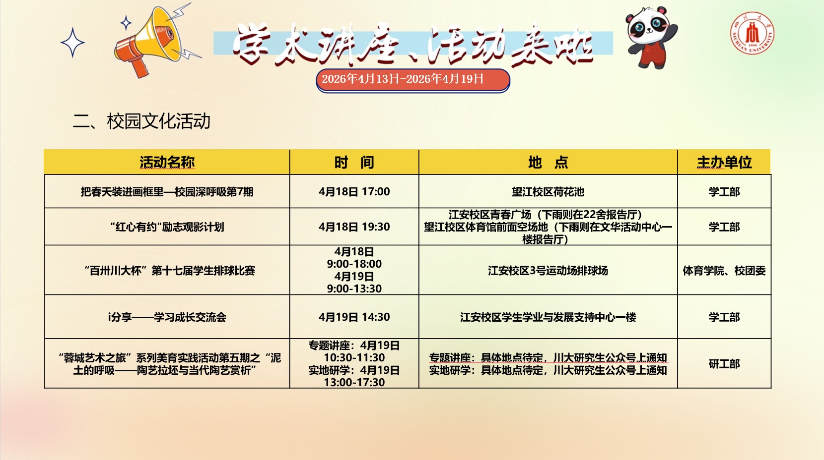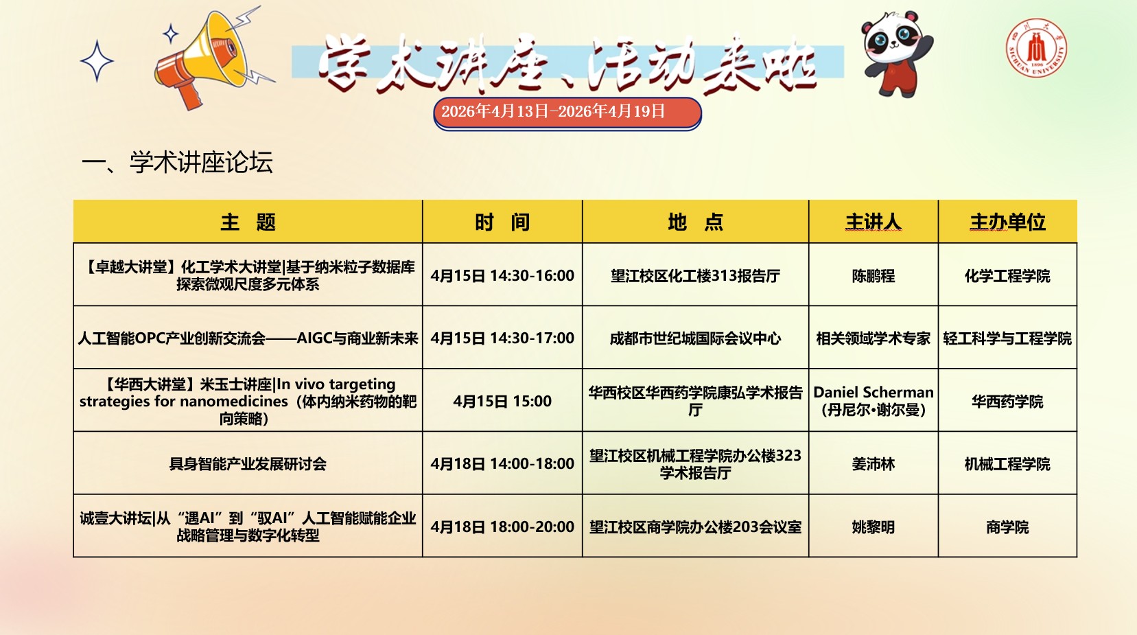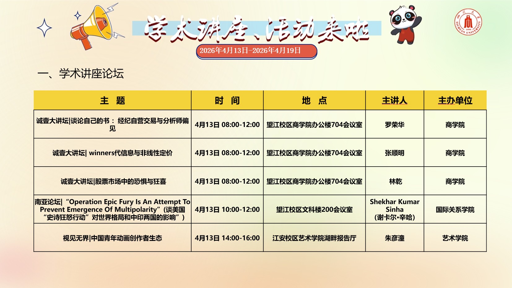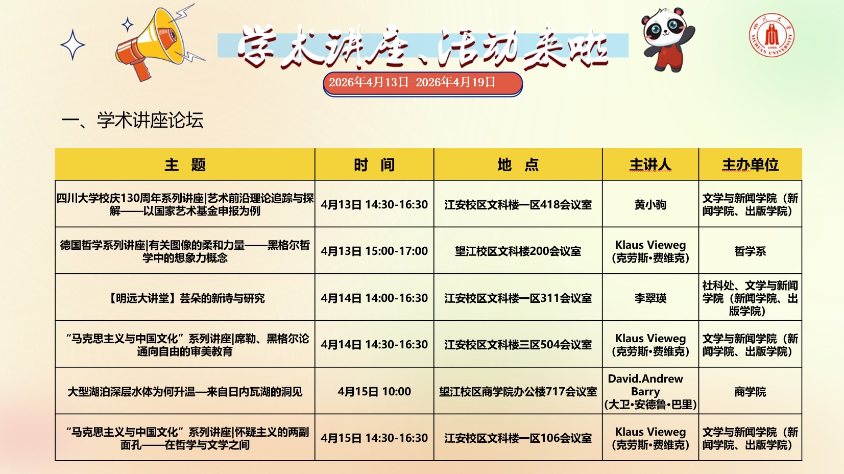 亚洲情色 2026年4月13日-2026年4月19日学术讲座预告