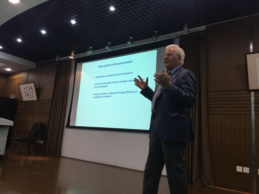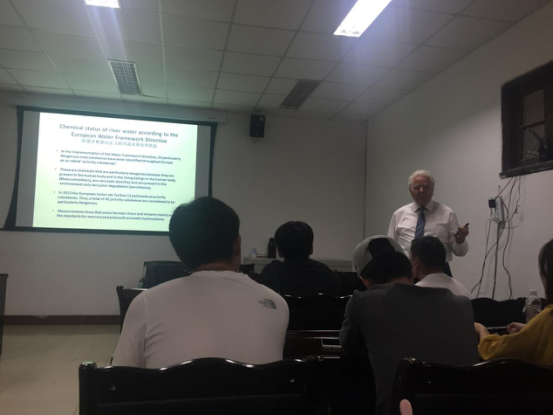 在5月9日的讲座上,Max Dohmann教授主要介绍了污水资源回收利用现状,分析了污水处理中的磷、氮、生物气、热能回收的潜力和价值,最后重点讲解了目前国际前沿的氮、磷和热能回收新工艺。Max Dohmann教授在5月11日讲座中,对欧盟水框架法定义的河流水质化学状态和生态状况、中国城市河道污染治理目标以及河道整治的技术措施进行了讲解,并利用具体的河道污染整治措施举例说明。讲座期间,学生就讲座中不解之处向Max Dohmann教授进行提问,Max Dohmann教授一一做了详细耐心的回答。