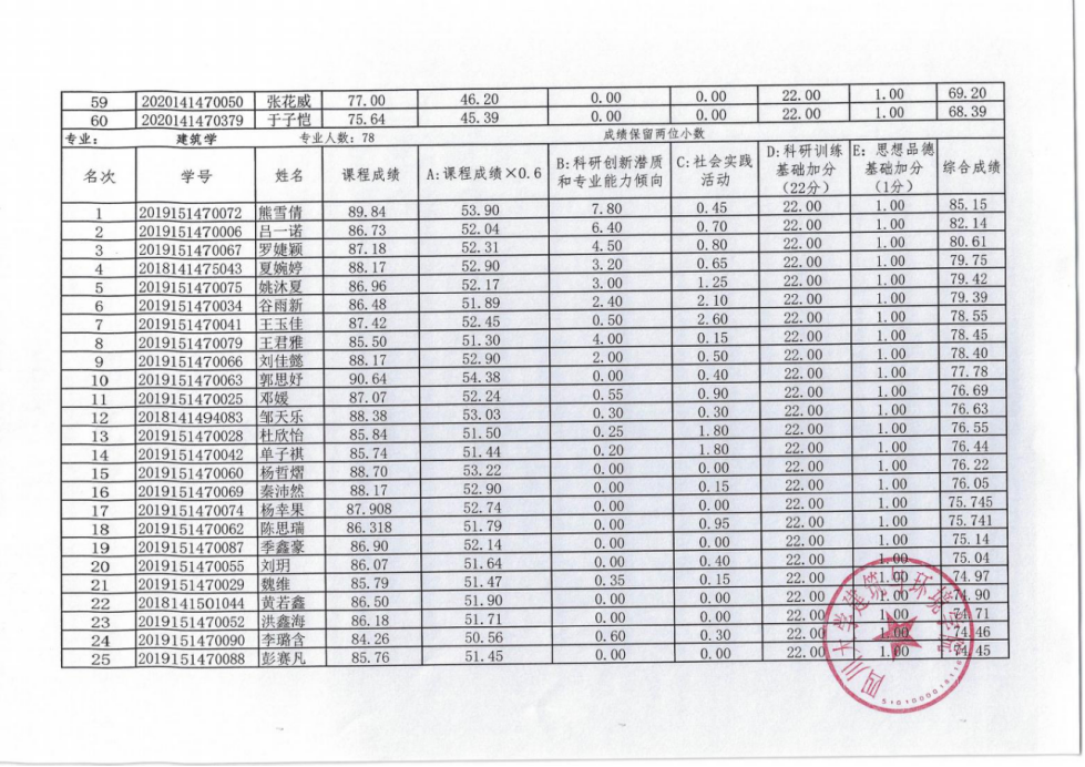 经过亚洲情色 成绩计算、专家审核,现将我院2024届推荐免试研究生综合成绩公示如下,公示时间由2023年9月15日至9月18日下午17:00。