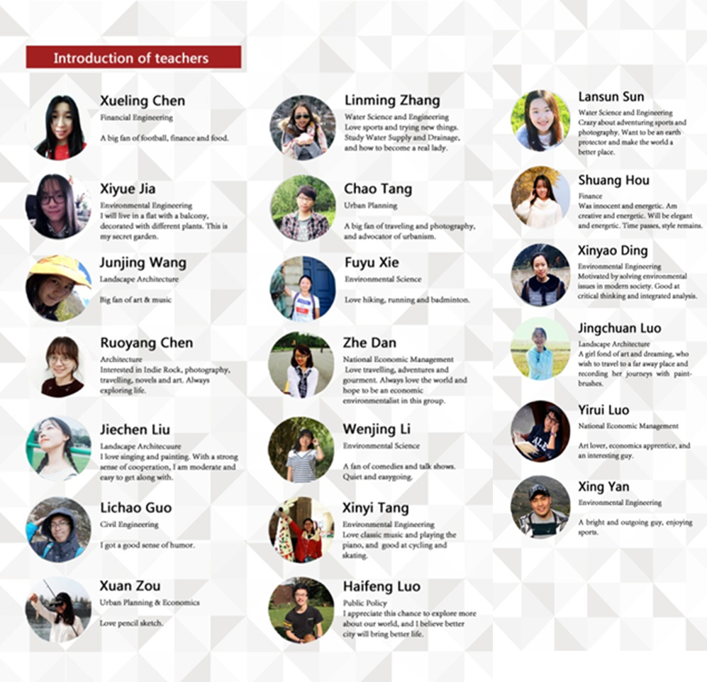 The 30 student and professor participants of SUSP come from College of Architecture and Environment, School of Economics, and Institute of New Energy and Low-carbon Technology. The program will focus on sustainable development of the Jiang'an Campus of Sichuan University.