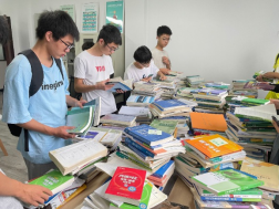 志愿者同学对捐赠的书籍进行清��整理和归类。经整理�1027�书籍�,公�课程教科书有434�,专��教科�373��练习�66本,考研用书47��出国用书33�,笔记类资料12�,其他类书籍62��