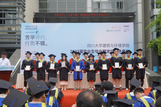 6月26日,学院2023届毕业生毕业暨学位授予典礼在江安校区建环楼前广场隆重举行。学院党委书记华国春,院长戴峰,副书记王晖,副院长刘敏、李沄璋,土木系主任戴靠山,建筑系主任赵炜,力学科学与工程系主任刘永杰,环境科学与工程系副主任杜烨,毕业班辅导员王天泽、赵梓丞、周琦颖、刘芸出席典礼。典礼由学院党委副书记兼纪委书记孙伯雷主持。