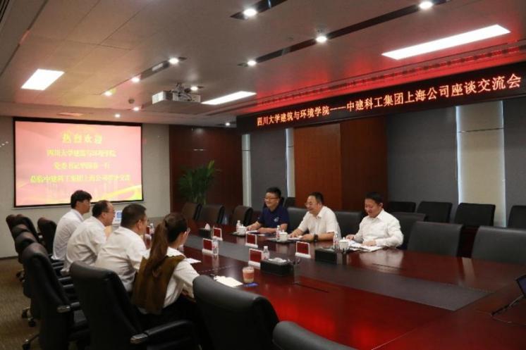 在中建科工集团有限公司上海分公司,公司党总支副书记毛治军就企业的发展历程、现状等情况作了介绍,孙伯雷介绍了学院近年来的发展状况和学生培养、就业等工作,学院本科2005级工程力学专业校友、公司副总经理郑洋表达了对学校学院培养的感激并介绍了在公司15年来的成长情况,本科2018级给排水科学与工程专业校友徐越恒分享了毕业一年来的心得体会。华国春就双方下一步深入合作,加强校企协同育人,充分发挥校友作用等方面工作进行了充分交流。