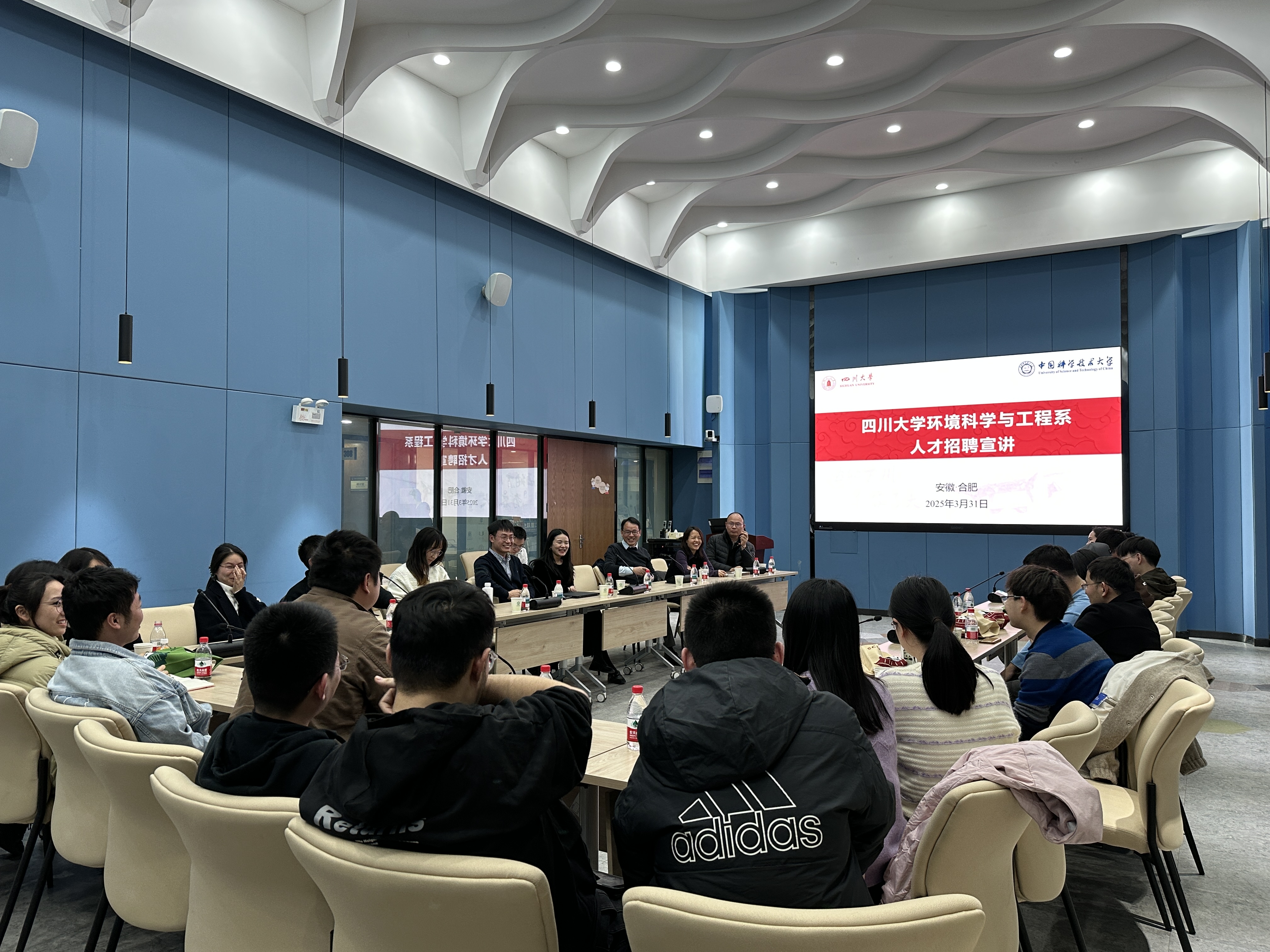 熊兆锟从学科概况、师资队伍、科研平台、职称晋升等角度全面介绍了亚洲情色环境系建系以来的发展情况,重点解读“双百人才工程”的申报条件、配套支持、职业发展路径以及川大为引进人才提供的薪酬待遇、科研启动经费及研究生招生指标。何传书以中科大环境系校友身份,结合自身实践,分享了从科研新秀成长为学科骨干的经验。交流环节,与会人员围绕人才引进细则、跨校合作机制及科研资源共享等话题踊跃提问,赖波一行一一做了解答。