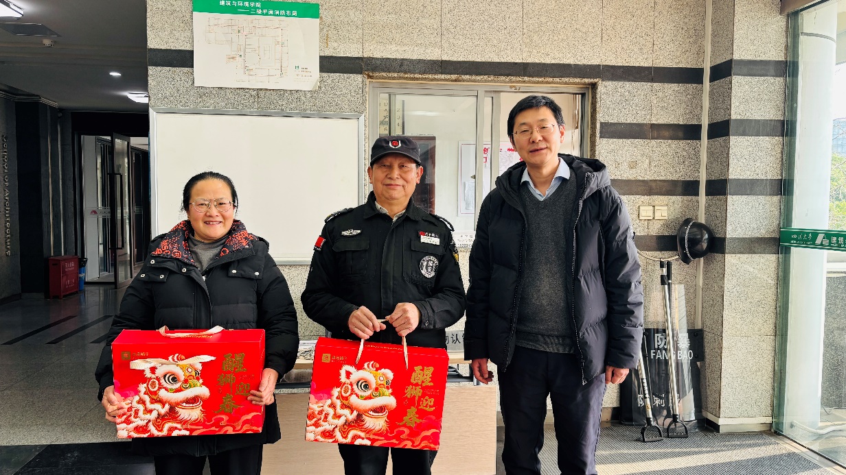 学院一行还探望了假期仍辛勤工作的学生宿舍管理人员和学院物业工作人员,为他们送去新春祝福。