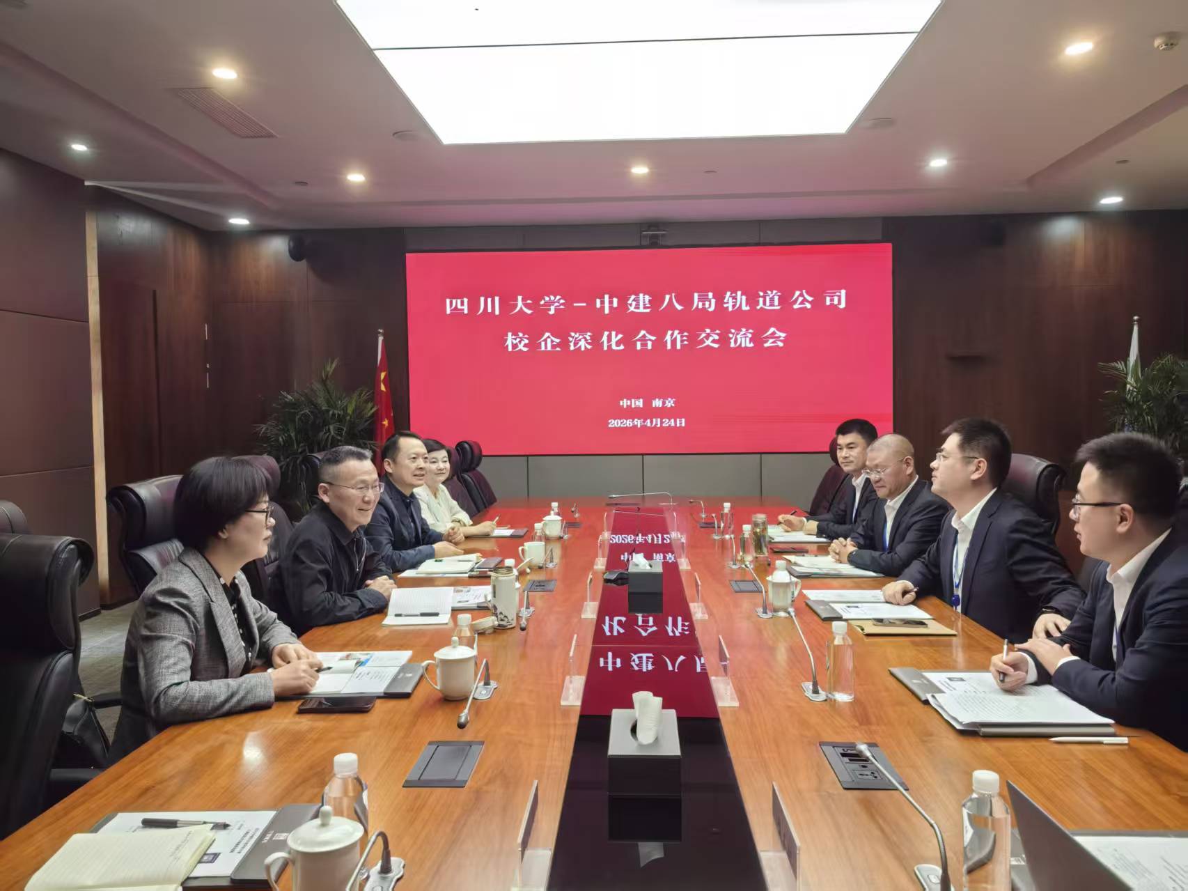 党委书记兰中仁、党委副书记兼纪委书记王燕一行,前往中建八局轨道交通建设有限公司开展访企拓岗活动。中建八局轨道交通建设有限公司党委副书记、纪委书记谢彬,总工程师唐立宪,人力资源部经理海洋等参加交流座谈。
