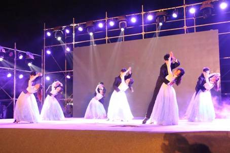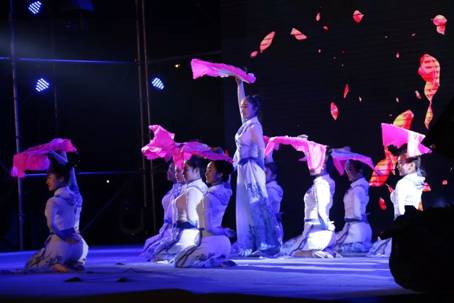 一场饱含深情的朗诵《厉害了 我的国》拉开晚会的序幕。在第一章“梦绘初境”中,歌舞《Bad romance》展现了同学们青春的个性与活力;舞蹈《秀色》展示出中国古典舞独有的韵味;歌舞串烧《弦歌四十年》唱出了改革开放四十年繁荣发展之路,中外学生的同台配合更是展现了“一带一路”倡议下的文化交融良好氛围;相声《我忍不了》风趣幽默地表达了同学们对校园不文明现象的拒绝态度,赢得满堂彩。