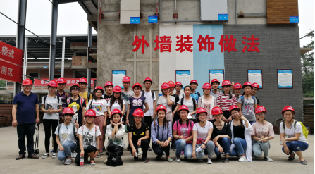 在认识实习的首日,同学们来到了四川建筑职业技术学校实训基地,参观了砌体结构、钢筋混凝土框架结构和钢结构的未竣工半模型建筑。领队老师结合实物模型,认真细致地为同学们讲解了外墙装饰施工工艺、脚手架及模板搭接、楼梯构造、防水构造、构造柱浇筑、板的钢筋布置和瓦屋面工艺流程等建筑施工技术。同学们在认真听讲的同时,积极踊跃地向老师提出问题,老师也不遗余力地向同学们授业解惑,实习的整个过程学习氛围浓厚,师生交流的气氛十分活跃。