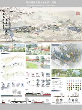 风景园林专业获得二等奖作品为《“十年幕府悲秦月,一卷唐诗补蜀风”——基于知觉连续性的叙事性蜀派园林设计》(团队成员:叶欣远、冯晴、龙琼、薛妍,指导老师:陈一);三等奖作品分别为《草木之上,再生其缘》(团队成员:罗雨雁、王思睿、许瀚文、周卓娅,指导老师:陈一)、《少陵食缘——基于杜甫饮食诗歌文化的蜀派园林景观设计》(团队成员:刘晓丹、刘洁琛、王怡云,指导老师:陈一)。