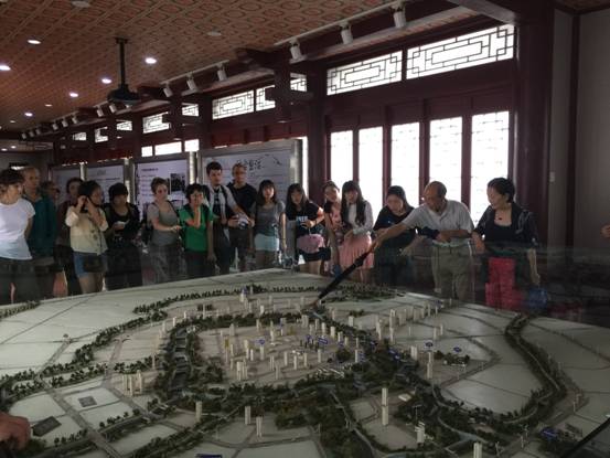 离开活水公园后,教授与学生们来到了位于成都市府河与南河交汇之处的合江亭。合江亭始建于1200年前,驶往东吴的万里征帆就是从这里启航,北宋时重建,并达到鼎盛,成为官民宴饮,市井游玩的热闹场所。合江桥畔也是时人登舟出川的主要口岸,明代辟有锦官驿,清代新置船税所。田老师和唐亚教授向外国专家以及学生们介绍了合江亭的建造历史以及府南河在成都的地位。