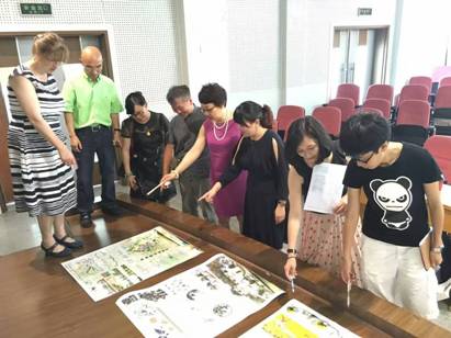 7月11日13:30,建环亚洲情色中英日风景园林交流营联合设计终期汇报在江安校区亚洲情色二楼学术报告厅举行。英国谢菲尔德大学Helen Woolley教授、刘孝仪讲师,日本千叶大学木下勇教授,建环亚洲情色建筑系副主任毛颖老师、沈一教授、罗言云副教授、王霞老师、王倩娜副研究员,及此次中英日风景园林交流营的全体中外学生。本次交流营把中英日学生分为六个小组,每个小组在前期场地调研、中期汇报之后,在前期成果的基础上,对所选场地的儿童户外活动空间展开了研究设计,并以竞赛的形式进行。