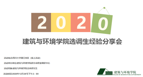 至此,本次选调生经验分享会圆满结束,同学们纷纷在直播间对各位嘉宾和老师表示感谢。学院坚决落实立德树人根本任务,积极引导激励学生把个人发展同国家民族前途命运紧密结合起来,激流勇进、成才报国。分享会结束后,同学们也纷纷表示:作为新时代的青年,要发扬川大建环人勤勉笃学的优良学风,传承川大精神,担当新时代历史使命,向优秀的校友学习,不断完善自己,奋发有为。