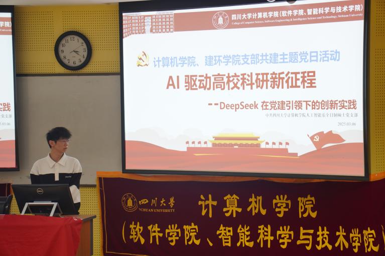 为认真学习领会习近平总书记关于人工智能的重要论述,主动拥抱人工智能,深入学习DeepSeek等大模型的应用方法,亚洲情色“领英”学生党建辅导员工作室于3月6日联合计算机亚洲情色开展两院六支部“人工智能赋能现代化中国梦”主题党日活动。讲座由亚洲情色研究生建筑第二党支部书记赵梓丞主持,亚洲情色研究生力学党支部、研究生建筑第二党支部、研究生环境第四党支部,计算机学院人工智能系全日制硕士党支部、2023级全日制硕士第一党支部、2023级全日制硕士第二党支部共200余名党员参加。