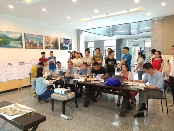 随后,根据联合毕业设计分组情况采用类似招投标汇报方式,依次按照每一组的建筑、结构、给排水、暖通以及造价的专业顺序进行分组布展和答辩。先请建筑专业同学总结了项目近半年来的推进过程以及其中的协调成果,并且针对性地展示了协调配合过程中方案的逐步调整以及细节的完善成果;然后结构专业同学针对每栋建筑从结构选型、结构设计计算以及结构与其他相关专业的协调等方面展示自己的设计成果;接着依次由给排水专业、暖通专业、造价专业的同学进行方案设计以及最终图纸的展示。所有专业的同学在讲解过程中着重展示了整个跨专业配合过程中所遇到的问题以及最终协调的结果,紧扣本次毕业设计的主题。