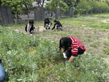 同学们戴上手套,拿起除草铲,三三两两成一组,投入热火朝天地除草劳动之中。辨杂草、紧握根、轻敲土、用劲拔,同学们互相配合、互相合作。经过1个多小时的辛勤劳动,农场里的杂草被清理干净,同学们细致地为含苞待放的春花果蔬浇水,看着此刻整洁有序、焕然一新的农场,同学们脸上都露出了喜悦的笑容。