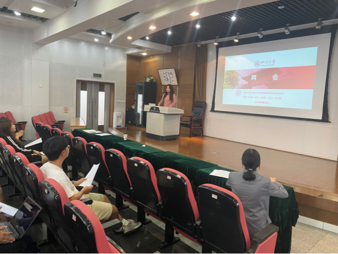 单子祺分别从两会的涵义、环保发展理念与行动以及碳达峰碳中和三个方面开展宣讲。她介绍了两会的举办模式与过程,指出根据《中华人民共和国宪法》的规定,“两会”召开的意义在于将“两会”代表从人民中得来的信息和要求进行收集及整理,传达给党中央。针对环保发展理念与行动话题,她引入了四川省流域保护方案案例,给大家分享了四川省在治理流域污染,保护河流生态环境方面的具体举措。同时她提到推行垃圾分类和减量化、资源化,四川省部分城市如成都、自贡、泸州等已经被列入国家首批无废城市建设名单。围绕碳中和碳达峰,单子祺阐释了二者的具体含义,并指出中国作为世界上最大的发展中国家,有恒心有决心实现“双碳”目标,正如习近平总书记所说:“实现‘双碳’目标,不是别人让我们做,而是我们自己必须要做。”