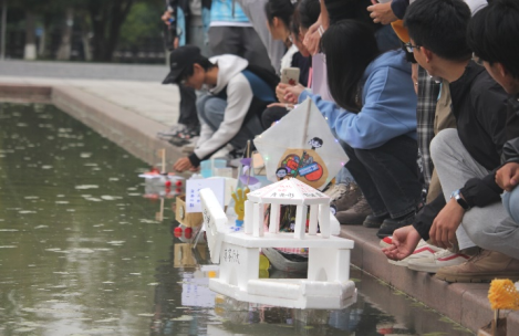 分享结束后,全体成员来到明远广场景观水池旁进行生涯之船下水仪式。同学们带着对个人生涯规划的新思考与对未来的无限憧憬,将一艘艘希望之船轻送入水。王婷婷表示,她对大家入学以来的成长感到十分欣慰,同时对各位同学的生涯规划思想表示充分肯定,祝福每位同学都能像自己制作的船模一样乘风破浪,逐梦远航。