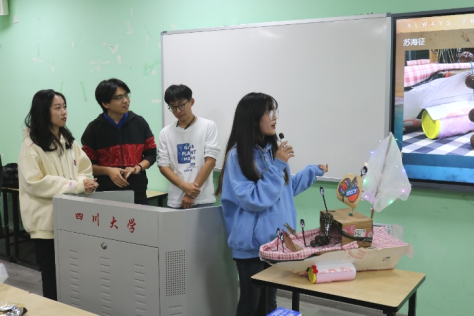 活动前,同学们随机结成小组,坚持“废物利用、节约资源”的环保理念,以生活中的各类废弃物(如塑料水瓶、快递箱、废弃口罩、泡沫板、一次性筷子等)为原材料设计自己的生涯之船,在船模的设计与制作过程中频出巧思,各显神通。