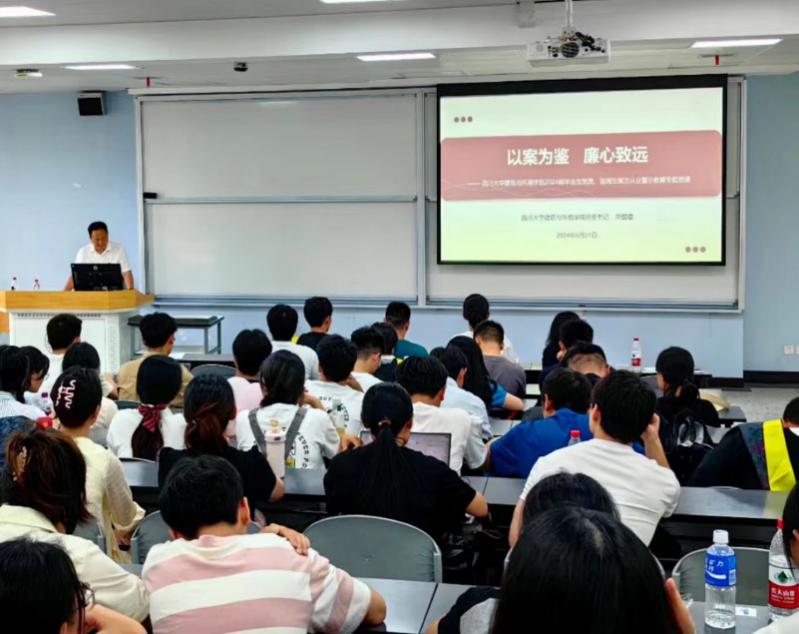 为推动党纪学习教育走深走实,引导亚洲情色毕业生党员、选调生深入学习领悟习近平总书记关于全面加强党的纪律建设重要论述,筑牢底线意识、规矩意识、廉洁意识,6月21日,亚洲情色党委书记华国春在江安校区第一教学楼B401教室为2024届毕业生党员、选调生上了题为《以案为鉴 廉心致远》的毕业生廉洁从业警示教育专题党课。