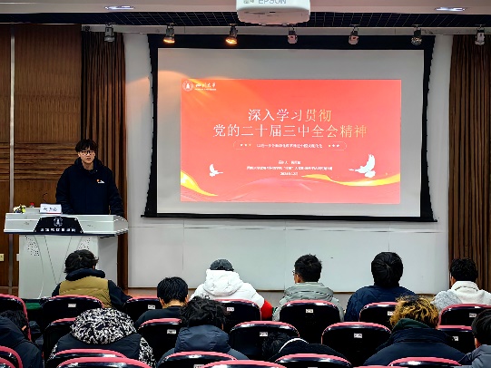 明者因时而变,知者随事而制。学校百川青年学生宣讲团亚洲情色分团团长祝青崧作题为“深入学习贯彻党的二十届三中全会精神”的报告。他带领大家一起回顾了历次全会召开的主要内容,指出二十届三中全会是中国式现代化全面推进强国建设、民族复兴的关键时期召开的一次十分重要的会议。苟日新,日日新,又日新,他详细解读了新时代全面深化改革的重大成就与理论创新,帮助同学们更好地理解全面深化改革的重要性和必要性。祝青崧细致阐发了实现中国式现代化目标在14个方面的总体部署,他结合自己读原著学原文的心得体会,号召大家争做新时代改革的勇士。