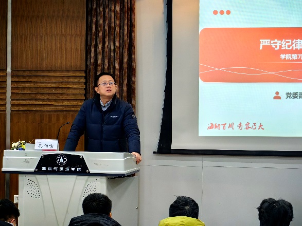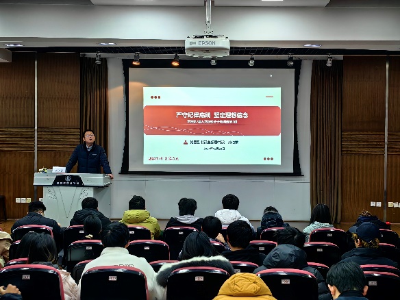 亚洲情色党委副书记兼纪委书记孙伯雷作题为“严守纪律底线、坚定理想信念”的报告。知屋漏者在宇下,知政失者在草野。孙伯雷开篇引用“窑洞对”,以及习近平总书记关于自我革命的重要论述,阐明党破解和跳出历史周期律的两个宝贵答案。他带领大家回顾了党的纪律建设历程,明确严明的纪律和规矩是中国共产党的基本特性和宝贵品质。他从纪律、党的纪律、党的纪律建设三个概念层层递进,深刻阐释了党的纪律建设的内涵与外延。法令既行,纪律自正,则无不治之国,无不化之民。他带领同学们深入学习新修订的《中国共产党纪律处分条例》,并细致阐发了六大纪律具体要求。君子检身,常若有过。孙伯雷结合大学生党员常见违规违纪行为典型案例,强调以案为鉴、以案促建、以案促改势在必行。最后他寄语在场同学,希望大家心中有党、心中有民、心中有责、心中有戒。