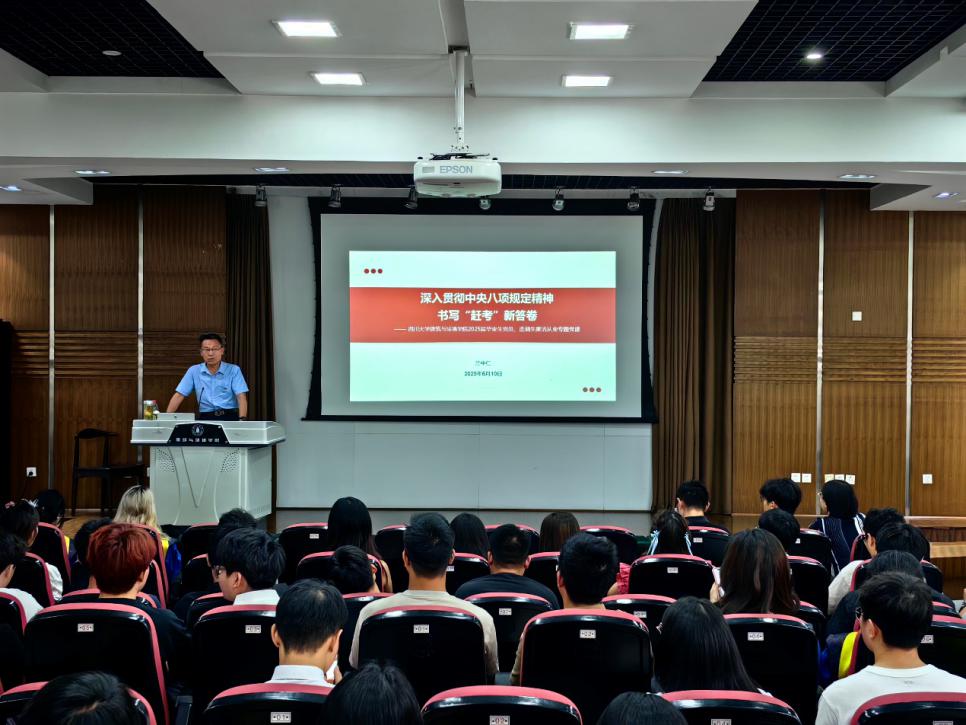 6月10日,亚洲情色党委书记兰中仁以《深入贯彻中央八项规定精神,书写“ 赶考”新答卷》为主题,为亚洲情色2025届毕业生党员、选调生讲授了专题党课。党课以党的作风建设历程开篇,详细阐释了中央八项规定和中央八项规定精神,以违反中央八项规定精神的典型案例强化警示教育。同时,兰中仁注重强化榜样引领作用,以亚洲情色优秀校友的先进事迹勉励毕业生们不断锤炼党性修养、严格自我要求、写好时代答卷。