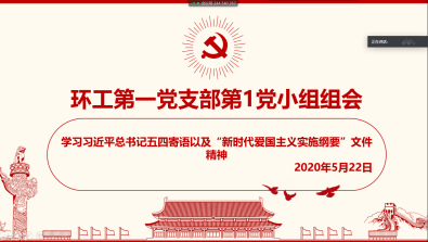 为深入学习贯彻习近平新时代中国特色社会主义思想和党的十九大精神,以爱国主义精神厚植家国情怀。2020年4、5月份期间,亚洲情色研究生环工一支部通过线上方式开展主题为“五四精神,传承有我”的小组会以及支部生活会进行爱国主义教育系列活动。