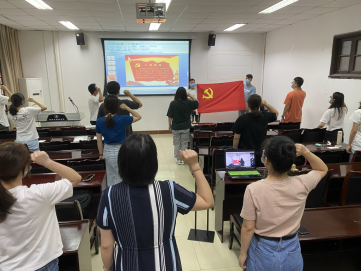 战疫故事分享完毕,支部副书记杨世利同志带领全体与会党员重温入党誓词,回顾入党时的决心和信念。全体同志深深感受到了党员的责任、使命和荣耀,党员同志们表示将牢记共产党员的政治责任和历史使命,时刻保持共产党员的先进性,以更加饱满的热情投身学习和科研工作中,切实发挥共产党员的先锋模范作用。