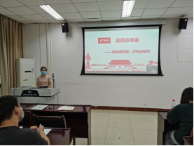 接着,胡建煜、秦玉莹等9位学生党员分享了身边的疫情防控故事。故事汇涵盖了大家熟知的英雄钟南山院士、身边的医护工作者、同学所在村镇的基层村干部、外卖员、快递员……身在日本的方宁杰同志向大家讲述了当前日本的疫情情况和防疫措施。