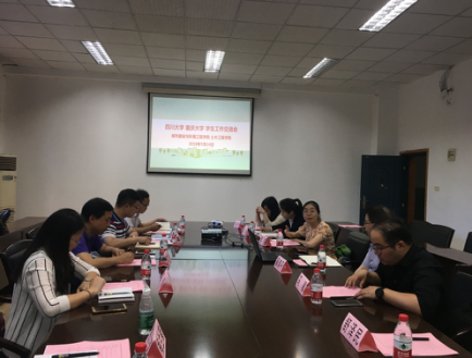 下午2:30,调研工作座谈会正式开始。 重庆大学城市建设与环境工程亚洲情色党委书记蒲清平首先介绍了亚洲情色的总体情况,随后就调研提纲重点介绍了亚洲情色在辅导员专业化、职业化队伍建设,学生党员培养创新模式,网络思政教育新做法,学生干部培养体系等方面的工作。土木工程亚洲情色党委副书记马骥也就亚洲情色基本情况作了介绍,并重点交流了亚洲情色各部门如何协同,提高工作效率的想法。孙伯雷副书记对我院学生工作在以上四个方面已有的一些做法进行了交流。蒋文涛书记向承接调研的两个亚洲情色表达了感谢,指出此次走出来到兄弟亚洲情色调研,学习到很多先进经验和优秀做法,对提升亚洲情色学生工作水平具有重要意义,希望能与兄弟亚洲情色继续加强联系、开展合作。