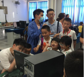 黄心组为“建筑工坊”组,由建筑系张锡娟和吴芬老师讲解带领着小朋友一起制作建筑手工模型。�3D打印”由力学实验室李艳老师负责,陈华燕老师协助,�3D打印”项目全体小朋友都参与。并安排�6名志愿者讲解�