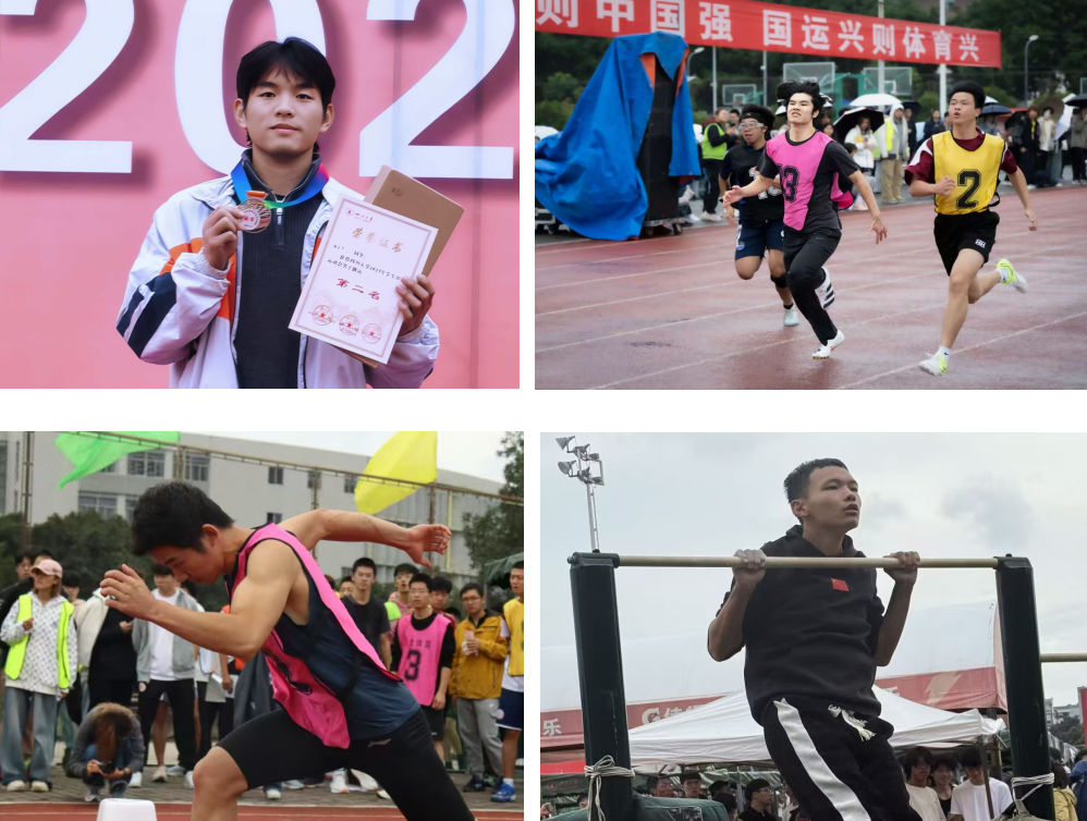 学生运动会上,参赛同学摩拳擦掌,展现青春活力。个人赛项目中,男子组参赛同学分别获得跳远第二名,实心球第八名,铅球第四名,垒球第十四名,100米第十二名,200米第九名,400米第五名、第十五名,800米第十三名;女子组参赛同学分别获得垒球第十五名,铅球第九名,跳远第十名、第十二名,400米第十名。团体比赛中,获得男子引体向上第十一名,立定跳远第八名,20×60接力第六名,男子4*100第十六名。