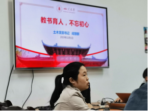 讲课中,阎慧群从“不忘初心,牢记使命”,“加强师德师风建设”、“坚守立德树人初心使命”、“拓宽专业口径,整合‘大土木’”几个方面进行了展开,与同志们进行了交流。