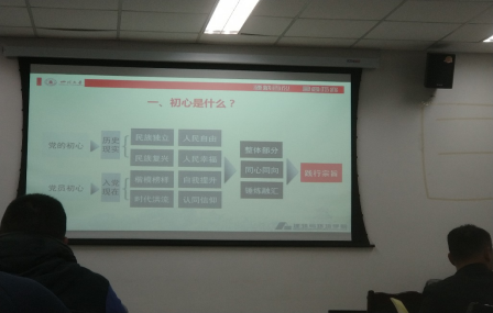 会上,支部书记高倩以“坚守初心,求真向善”为主题为同志们讲授了党课。党课分为“入党初心”、“研究生党员的初心”以及“如何做到不忘初心”三部分。高倩强调,共产党的初心是民族复兴,人民幸福;共产党员的初心则是认同信仰,争做楷模,从而实现自我提升。进而通过全党人士的同心同向,锤炼融汇,最终实现全心全意为人民服务的宗旨。