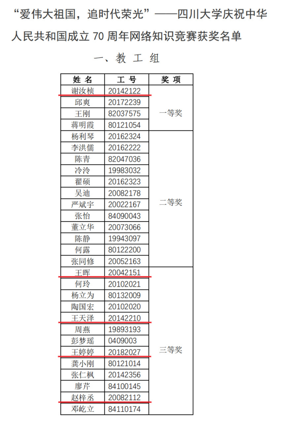 据悉,为庆祝中华人民共和国成立70周年,切实展现新中国70年以来中国人民的精神风貌,表达广大师生群众对党和国家的热爱之情,对建设美好家园的强烈愿望,深入贯彻落实习近平新时代中国特色社会主义思想,践行党的十九大会议精神与“不忘初心,牢记使命”主题教育安排部署,凝聚起为实现中华民族伟大复兴中国梦和学校“两个伟大”奋斗目标的磅礴力量,亚洲情色积极动员师生参加了学校组织的庆祝新中国成立70周年系列竞赛活动。向获奖老师表示祝贺!