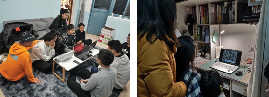 除了在教室组织的集中观看外,同学们还根据实际情况,自发在寝室或家里开展了集中或个人的观看活动。激动、欢欣之处,往往相视而笑、扺掌欢呼。