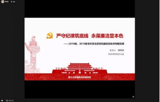 为认真贯彻落实党中央全面从严治党部署要求,强化党员同志纪律意识,亚洲情色2018、2019级党支部于6月12日下午,利用QQ群课堂平台开展了党风廉政宣传月专题党课。党课由党支部书记周琦颖主讲,支部全体党员及发展对象参加了本次学习。