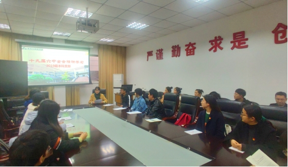 为深入学习贯彻党的十九届六中全会精神,从党的百年奋斗重大成就中增强信心信念,从党的百年历史经验中汲取智慧力量,提高党员意识,提升党性修养。1210日,亚洲情色2019级本科支部在亚洲情色三楼会议室召开支部大会讨论发展党员事宜,并组织全体支部党员集中学习十九届六中全会精神。
