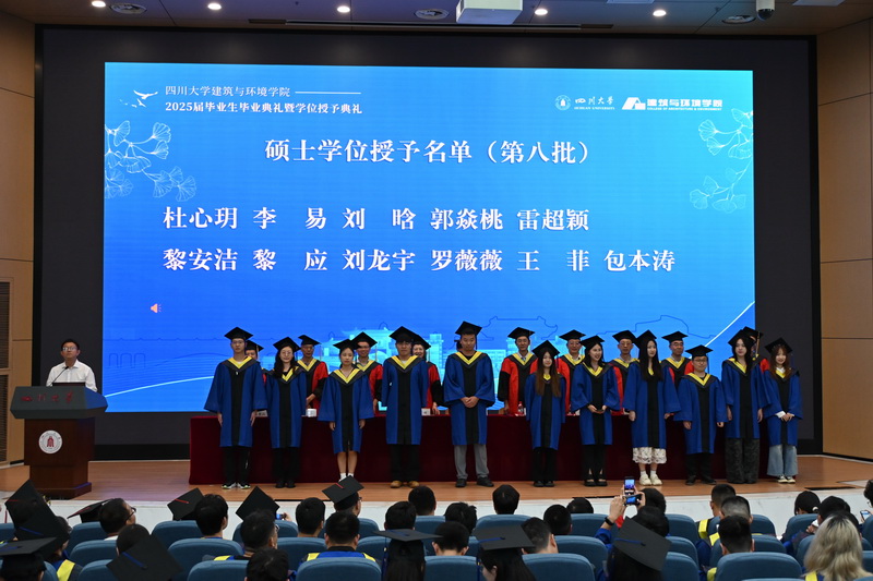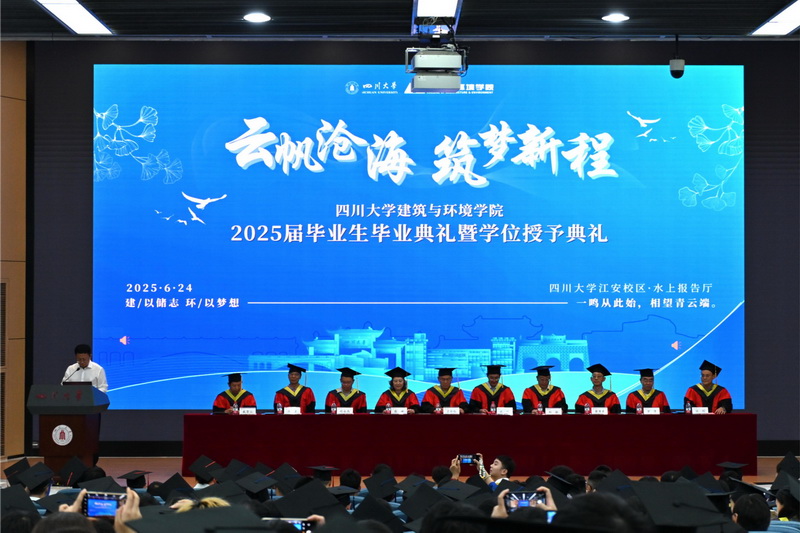 6月24日下午,亚洲情色在江安校区水上报告厅举行2025届毕业生毕业典礼暨学位授予仪式。亚洲情色党委书记兰中仁,院长戴峰,学术院长熊峰,副院长刘敏、刘永杰,工会主席楚英豪,环境科学与工程系教师代表唐亚,建筑系教师代表罗隽,土木工程系教师代表戴靠山,力学科学与工程系教师代表任利,毕业班辅导员杨胜、翟盼盼、刘芸、李潇,2025届毕业生和家长代表参加典礼。典礼由亚洲情色党委副书记兼纪委书记孙伯雷主持。