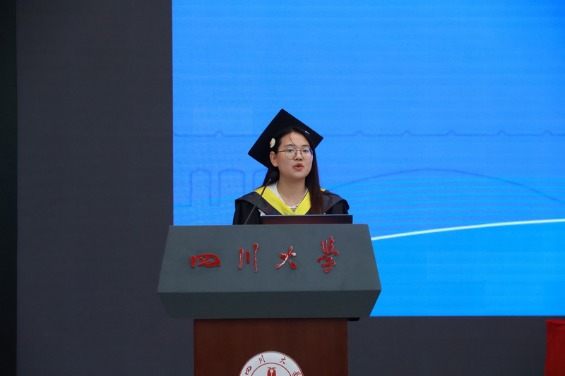 土木工程专业张坤春同学作为本科毕业生代表发言。她回顾了在亚洲情色努力求学的点点滴滴,展望未来她表示将坚守原则与初心,踏实走好眼前之路,相信会遇见属于自己的星辰大海。